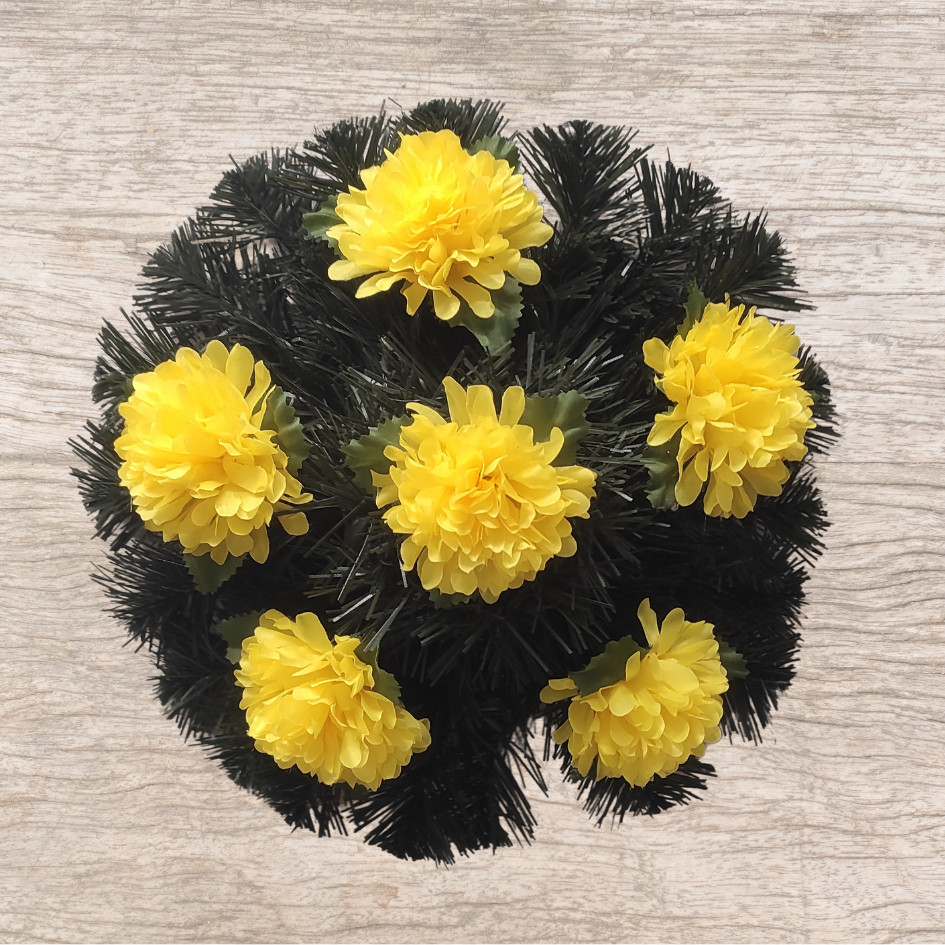 Gondosan készített, tartós selyem koszorú, amely hosszú ideig megőrzi szépségét és méltó dísze lesz szerettei nyughelyének.